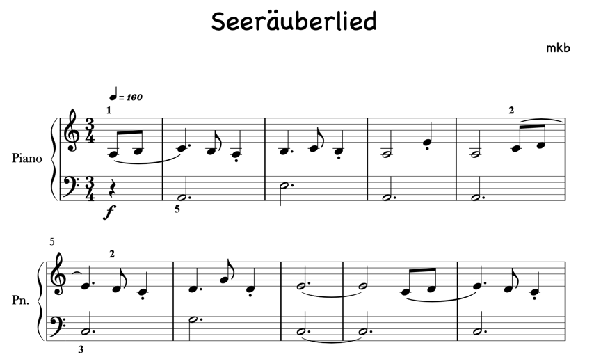 … die Noten zu den einfachen bis mittelschweren Klavierstücken